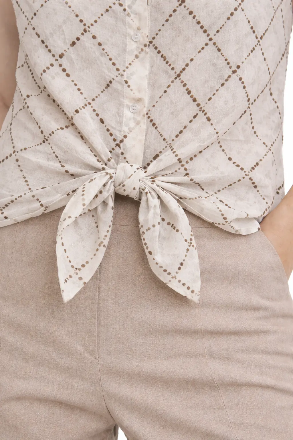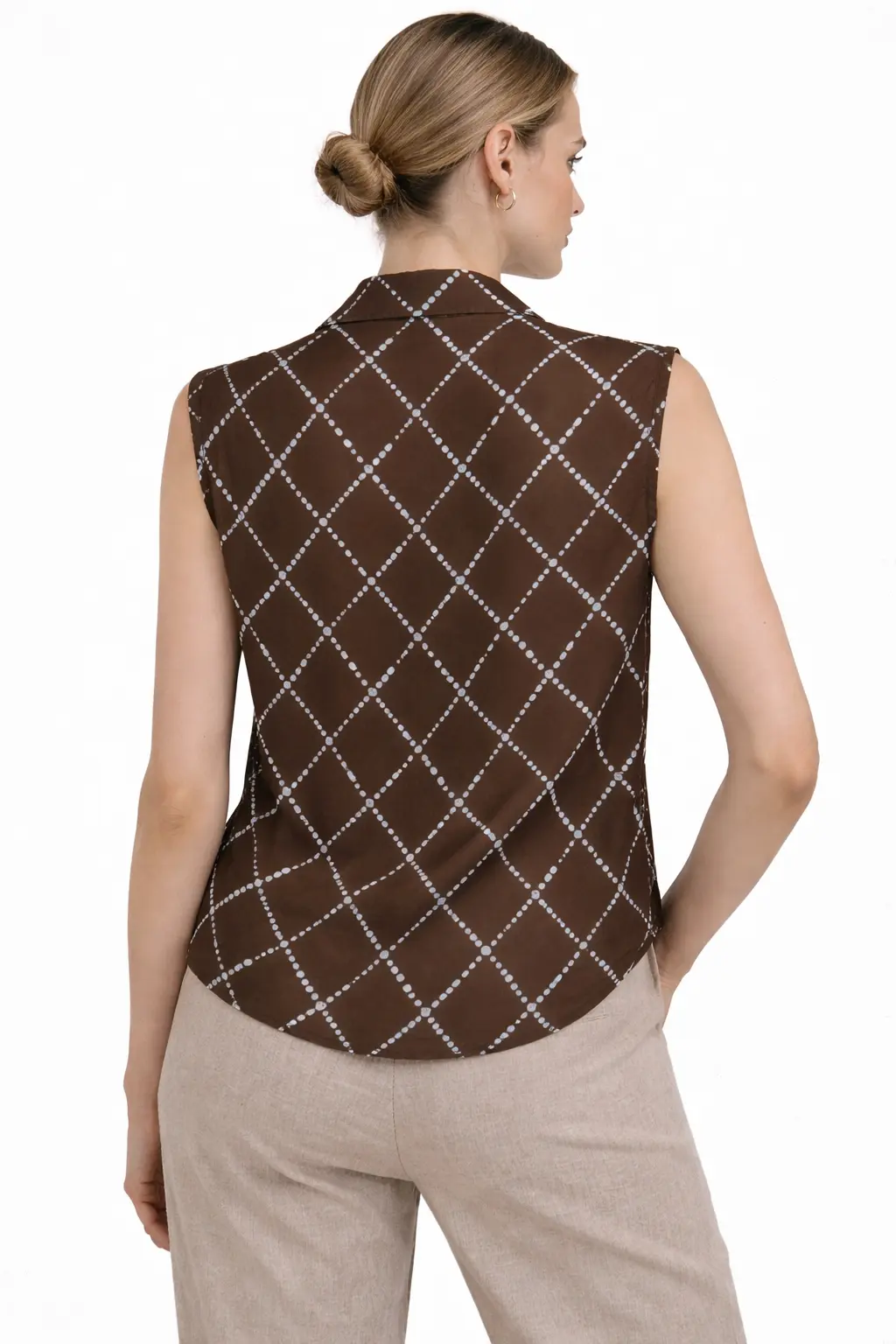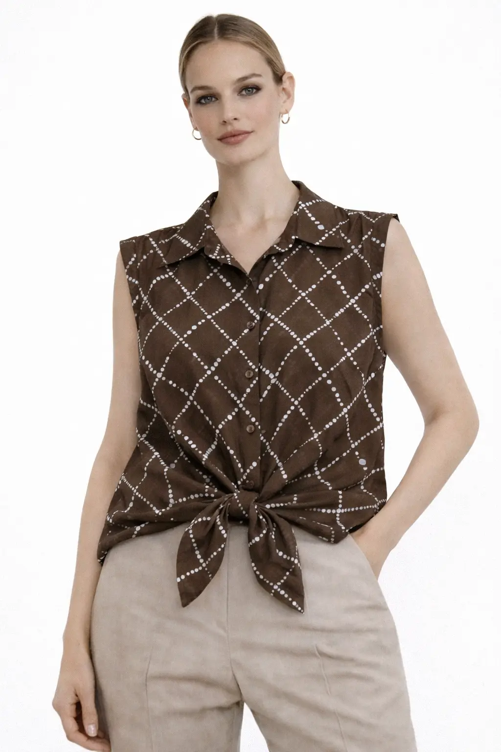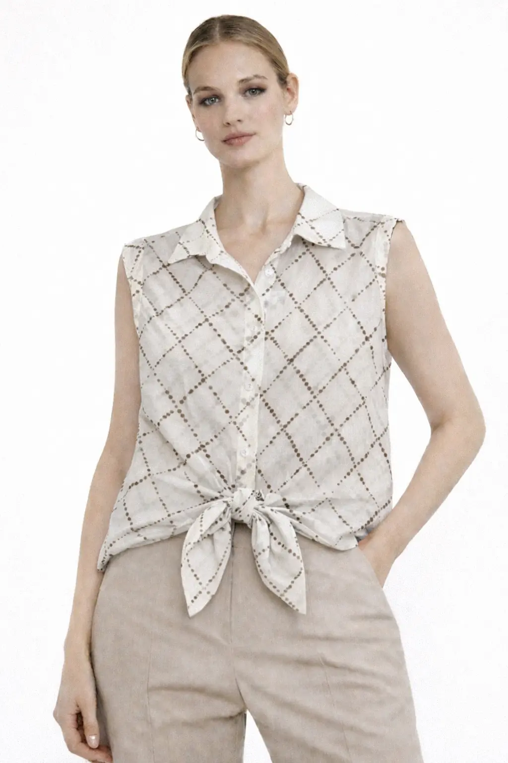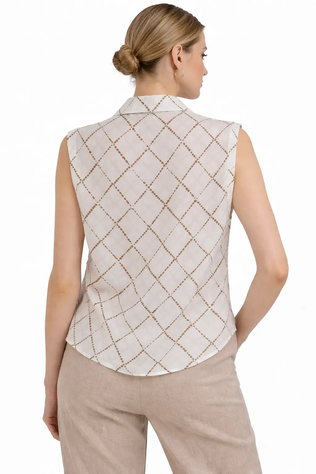 La blusa donna Diamante 8 è un capo elegante e versatile perfetto per outfit femminili moderni. Realizzata in 85% Tencel e 15% poliestere, garantisce leggerezza, comfort e una vestibilità fluida. Il design senza maniche con colletto classico e chiusura frontale con bottoni dona uno stile raffinato, mentre il nodo frontale aggiunge un dettaglio moderno e femminile. Ideale da abbinare a pantaloni eleganti o jeans per creare look casual chic perfetti per la stagione estiva.DETTAGLI PRODOTTO