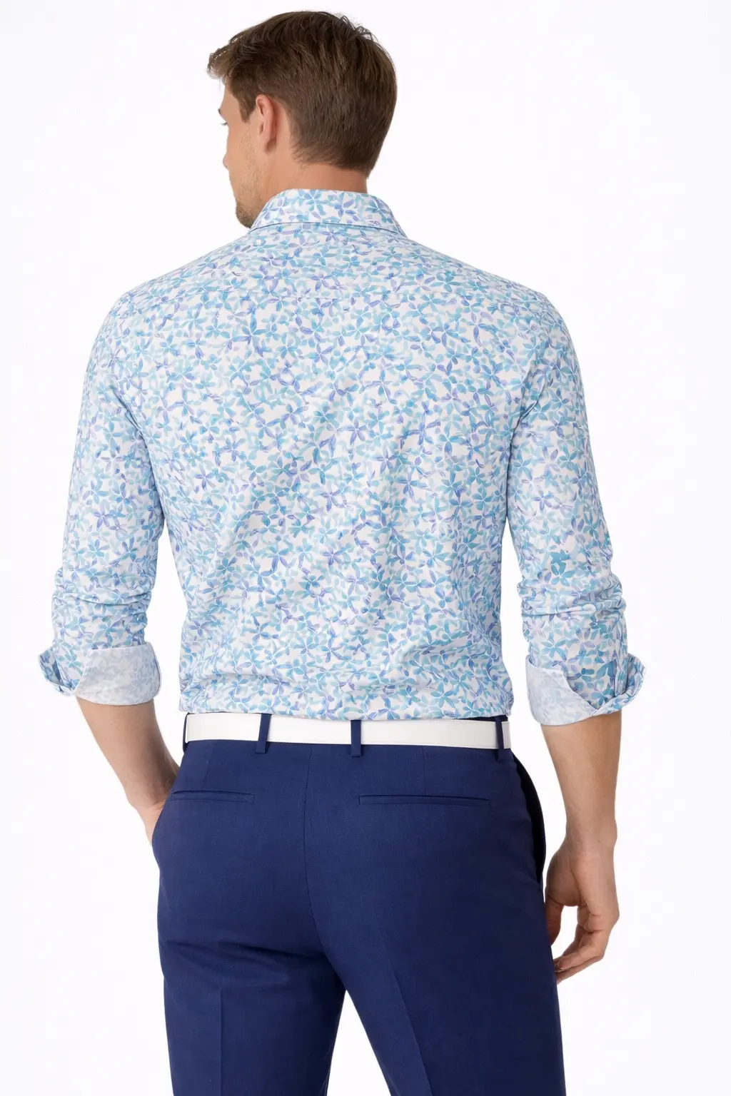 Il design si distingue per una stampa floreale delicata e moderna, caratterizzata da piccoli motivi che creano un pattern armonioso e raffinato. Questo tipo di fantasia rende la camicia ideale per chi vuole aggiungere un tocco di personalità al proprio outfit senza rinunciare all’eleganza.