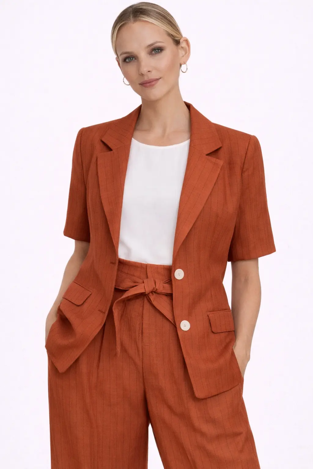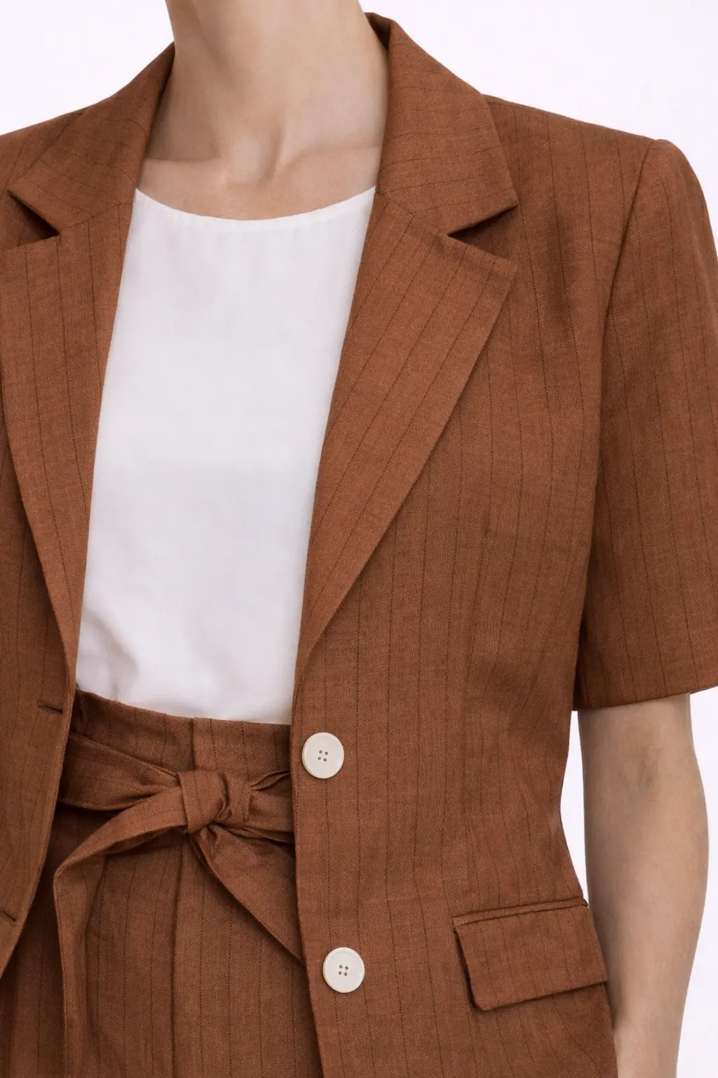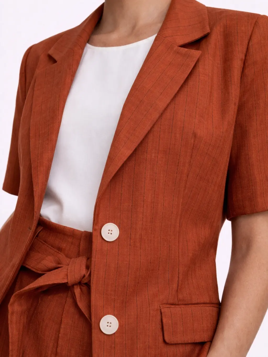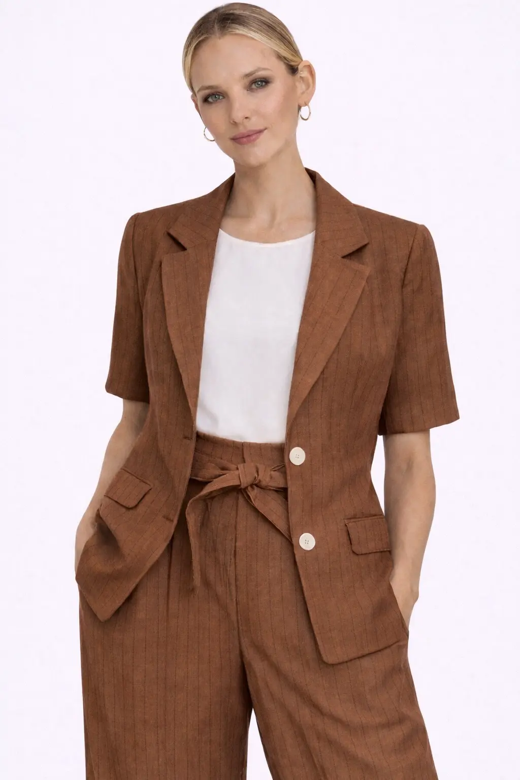 La giacca donna Lumina è un capo elegante e contemporaneo perfetto per completare outfit raffinati. Realizzata in 50% viscosa, 41% lyocell, 4% lino e 3% poliestere, offre leggerezza, comfort e una vestibilità fluida. Il design a manica corta e il taglio sartoriale la rendono ideale per la stagione primavera estate. Perfetta sia abbinata al pantalone coordinato sia per creare look casual chic.DETTAGLI PRODOTTO