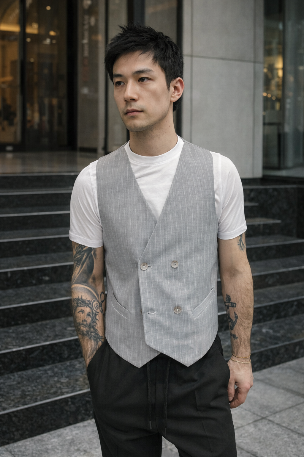 - Doppiopetto con vestibilità slim chiusura con bottoni