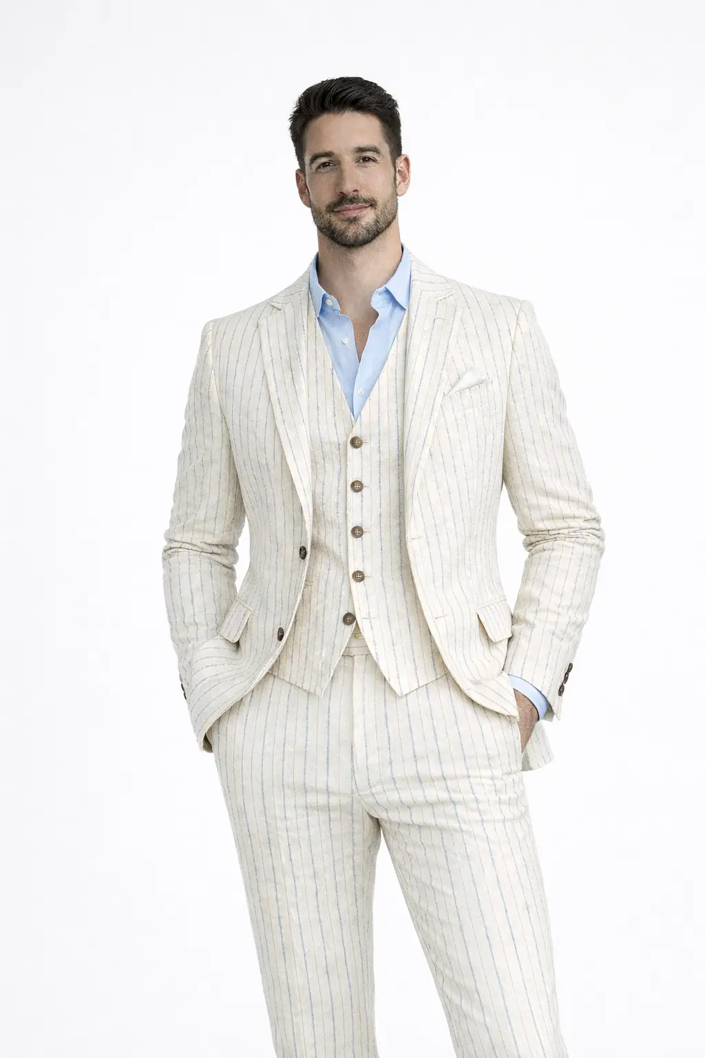 Il pantalone uomo Telamira a righe è pensato per chi desidera un look elegante ma leggero, perfetto per la stagione primavera estate. Realizzato in 75% cotone e 25% poliestere, garantisce comfort, traspirabilità e una vestibilità curata. Il motivo a righe sottili dona un’eleganza discreta e contemporanea, ideale sia per outfit formali che per abbinamenti più rilassati.DETTAGLI PRODOTTO